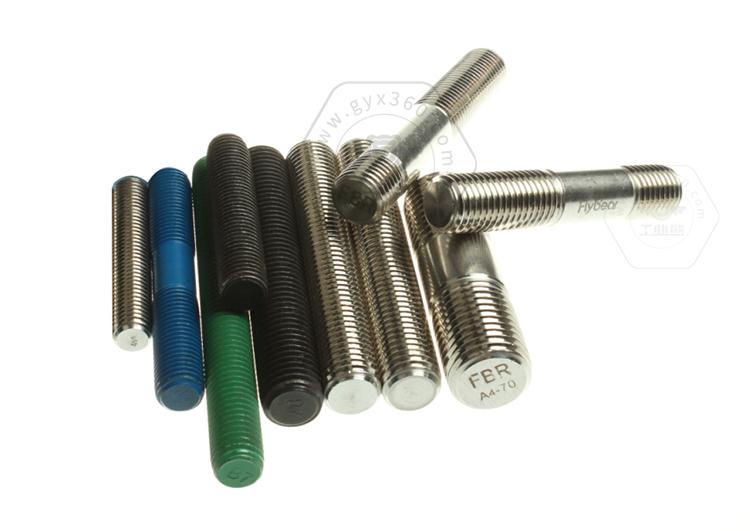 雙頭螺柱一般都需要經過表面處理,螺栓表面處理的種類很多,一般常用的有電鍍、發藍、熱浸鍍鋅、氧化、磷化、達克羅處理等。電鍍緊固件在緊固件的實際使用中占有很大的比例,尤其是在汽車、拖拉機、家電、儀器儀表、航空航天、通訊等行業和領域中使用廣泛。而雙頭螺柱常用的電鍍有鍍藍白鋅、鍍彩鋅,常用的氧化處理有發藍。