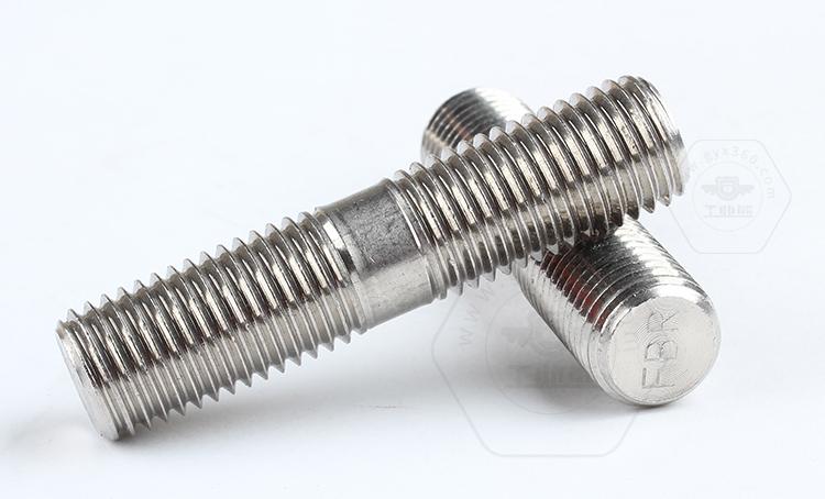 雙頭螺柱一般使用情況是植入端擰入工件,植入端的長度有1d,1.25d,2d,(d表示螺紋公稱直徑),另一端穿過被連接工件使用螺母與螺柱螺紋緊固連接。