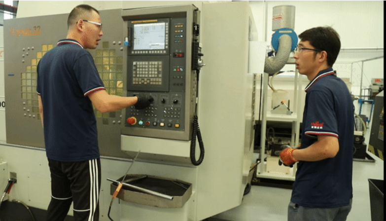 但也不是每一步都很順利,當他遇到刀具發出一聲異響以后,(這聲音小編是一點兒沒有分辨出)立刻關停機器,小跑著找到自己的師傅。他直接說明了問題后,正在調機的師傅立馬來到他的機器前,耐心地幫他找出問題原因,并且教他如何處理,通過重新調試刀具,快速地解決了問題,小楊也露出了笑容。