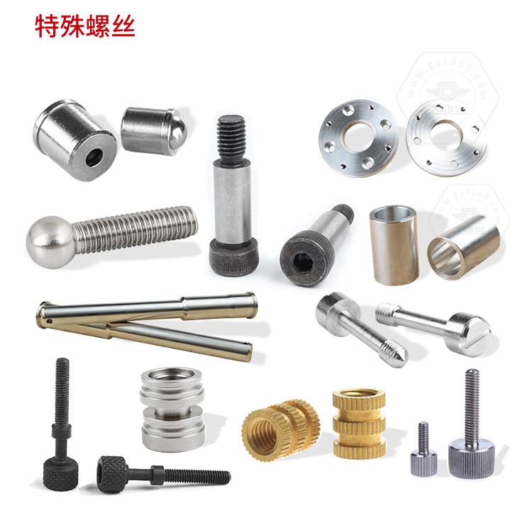 可提供鈑金行業特殊螺絲、6061鋁材質、襯套、鋼球定位珠、滾花高頭螺釘GB834、球頭螺絲、塞打螺釘、手擰螺絲、塑料植入用嵌入件等緊固件。