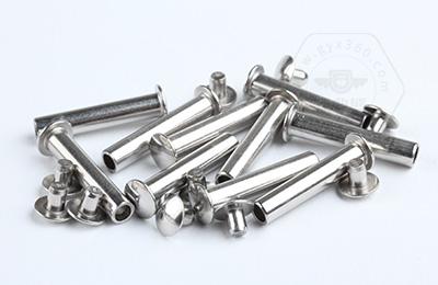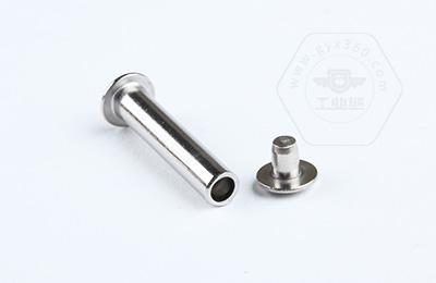 安裝時尾部空心部分受擠壓向外翻邊,形成卡扣,固定連接件。 扁圓頭半空心鉚釘主要用于金屬薄板或皮革、帆布、木料等非金屬材料的鉚接場合。