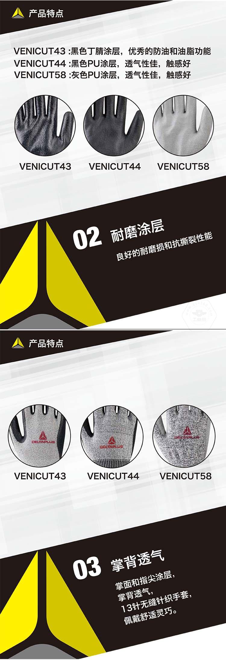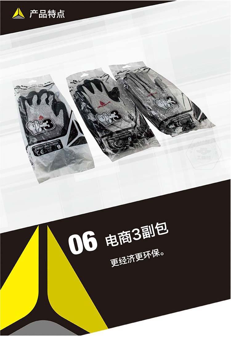 商品名稱:代爾塔 3副裝防割勞保工作手套 VENICUT43(3級耐磨4級防割)