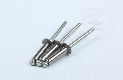 鉚接時,鉚釘釘芯由專用鉚槍拉動,使鉚體膨脹,起到鉚接作用。這類鉚釘特別適用于不便采用普通鉚釘(須從兩面進行鉚接)的鉚接場合。故廣泛用于建筑、汽車、船舶、飛機、電器、家具等產品上。