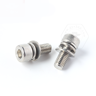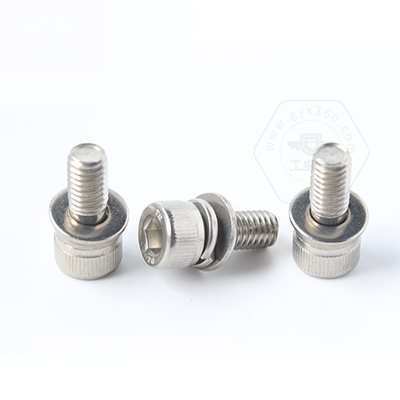 • 產品描述:DIN912 內六角圓柱頭滾花帶平彈墊組合螺釘,是組合螺釘的一種,又稱為內六角圓柱頭組合件、內六角杯頭連接副、內六角杯頭三組合螺絲、圓柱頭自帶平彈墊螺釘。DIN912 內六角圓柱頭滾花帶平彈墊組合螺釘,由內六角圓柱頭螺釘、平墊圈和彈墊先組合后,再搓絲,形成一個組合件,組合好后墊圈能自由轉動且不會脫落。組合件使用方便,不用再另配平墊、彈墊,大大提高生產組裝效率。DIN912 內六角圓柱頭滾花帶平彈墊