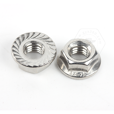 • 產品描述:DIN6923 六角法蘭帶齒螺母,又名六角法蘭面帶齒螺母、六角法蘭帽、六角帶墊帶防滑齒螺帽、法蘭面防松帶齒螺母、花齒法蘭防松螺母。DIN6923 六角法蘭帶齒螺母,法蘭面與六角螺母一體成型,法蘭面帶花齒比平面法蘭鎖緊力更強。法蘭帶齒的設計具有防滑止動的作用,裝配時不需要額外使用平墊、彈墊,使用起來更為方便。DIN6923標準規定了螺紋規格為M5-M20;性能等級為碳鋼8、10、12和不銹鋼A2-7
