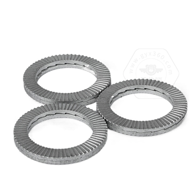 • 產品描述:DIN25201SPS 雙疊自鎖墊圈,也叫碳鋼加大防松鎖緊墊圈、愜入式鎖緊墊圈、雙疊自鎖墊圈抗振防松動墊圈、自動鎖緊功能墊圈、安全鎖緊墊圈、雙層防松墊片、減震墊圈、對鎖墊圈、楔齒墊圈。DIN25201SPS 雙疊自鎖墊圈由二片不同斜紋墊圈組成,組裝時內斜齒面相對,外側放射狀齒面與兩端接觸面形成咬合狀態,當連接件受到振動并產生螺栓松動隱患時,只允許兩個墊片內側的斜齒相對錯動,導致張力升高,從而防止松